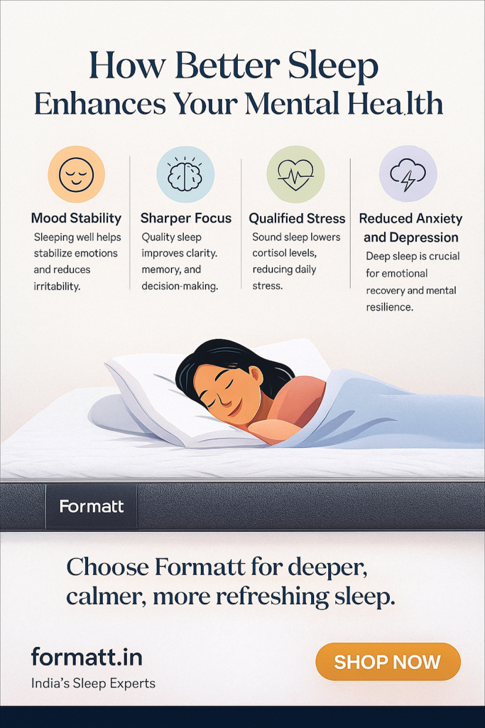 A Formatt mattress supports your spine, reduces pressure points, and enhances REM sleep — all essential for mental health.